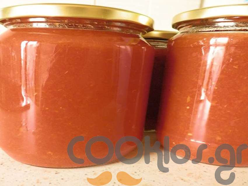 - 9 λίτρα πολτό από ντομάτες (ρόμα κατά προτίμηση) ώριμες και ζουμερές (περίπου 11 κιλά ντομάτες)